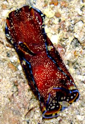 Locality: Eilat, Village Beach. Israel, Red Sea (Gulf of Eilat). Depth: 4 m. Length: ca. 8 cm. 26 March 2005. rubble slope, night. Photographer: Binyamin and Shulamit Koretz.Playing amateur scientist, we came up with 3 possible explanation