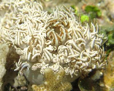Bunaken Island, North Sulawesi, Indonesia. intertidal. Length: up to 30 mm. 12 July 2003. intertifal coral reef with patches of sea grass. Lower photo showing animal nestling in Xenia colony. Photographer: Michael Schrödl