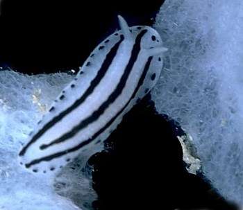 4-10 m depth, Phi Phi Island, southern Thailand, 25 Nov. 1989, dorsal view of 10 mm specimen on food sponge, Gellius sp. (Brunckhorst, 1993: Plate 8F).