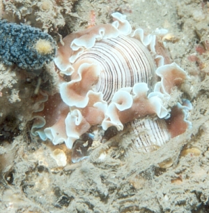 After reading about the N.Z. Philinopsis taronga mating, we wondered whether this pair of Rose Petal Bubble shells [Hydatina physis] we found may have been mating. Summer 2003 was a good year for Hydatina physis.