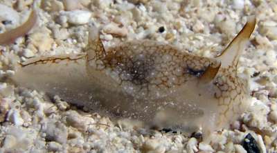 Here's an image of Pleurobranchaea inconspicua Bergh, 1897 taken on a night dive off the coast of Cozumel Island, Mexico. It differs from the image posted by Anne DuPont [message #5115 ], having a netted pattern rather than spots on the mantle.