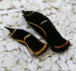 These are an extreme colour form of an animal I identified for you in an earlier message as C. berolina [see #9573], a species which I later decided was a Caribbean population of C. africana [see #11810; #12457]. One of the animals in your earlier message had the same yellow bands, but also had white mottling all over the body as well. As I discussed earlier, Aglaja hummelincki was described from preserved animals which were said to be 'black and have small pigment free blotches on back and parapodia' which is not very helpful in identifying living animals.