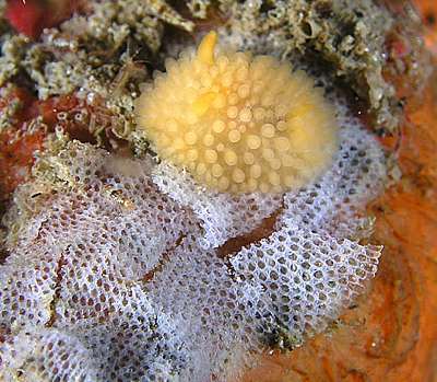 Here are photos what I think is Adalaria proxima with its food from South Korea.