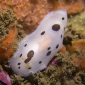 There have many a number of black-spotted dorids reported from South Africa [see #14763] but none seem to fit this animal. Most are either species with bristles [caryophyllidia] on their back [Gargamella, Rostanga] or are smooth [Dendrodoris, Aphelodoris].