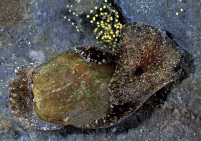 Until that surfaces, here are photos of this species from Lake Merritt (a finger of), San Francisco Bay, California. You will notice, as Sandra's message [#7141] points out, externally H. japonica (= H. callidegenita) has a deeply bifurcate posterior edge to the headshield, seen in these photos. Internally the species are identical, and differ dramatically from H. virescens and H. vesicula.