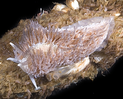 I am really looking forward to getting my hands on some specimens. Your animal here is the normal length, and similar in coloration to the southern (true) A. papillosa. In Gig Harbor, Washington, huge specimens up to 4 inches (10 cm), and a very dark speckled grey, cover the bottom of the harbor. The egg masses form huge carpets everywhere. Hopefully I can figure out this dilemma soon.