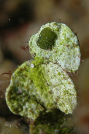 Concerning white patches on the Halimeda - I had always presumed they were from the activities of the sacoglossans, and as you can see in the close-up, the white regions are often patches on the green background, much like the scrape marks left by a grazing limpet. However these animals don't feed by scraping or grazing, they pierce a hole through the skin and suck out the cell contents. Perhaps in this example each patch represents an area of the plant that has had its cell contents sucked out.