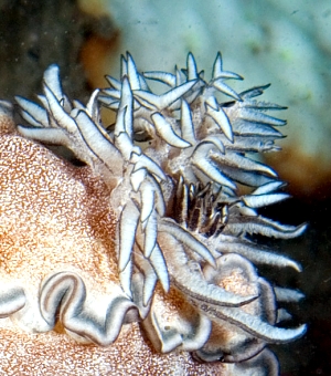 I must say the photo of the gills is very spectacular. Many of the larger species of Glossodoris have the gills arranged not in a complete circle but in an arc around the anus, and at the ends of the arc smaller gills form a vertical spiral, greatly increasing the number of gills. I have not seen one quite as elaborate as yours.