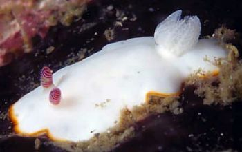 • Noumea nivalis - has a single orange-yellow band around the mantle edge; the upper half of the rhinophore club is orange, the lower white, and the white gills are orange tipped. There can sometimes be a few diffuse orange spots on the mantle.