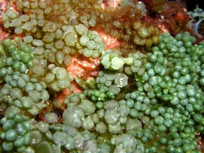 To accompany my other images of Oxynoe kabiraensis here is one showing how I think it is camouflaged when living on the Caulerpa on which it feeds. From the dorsal view, you can see that the dark triangle pattern breaks the light green part of the body into two rounded regions wjhich look similar in shape and size to the Caulerpa's 'ramuli'