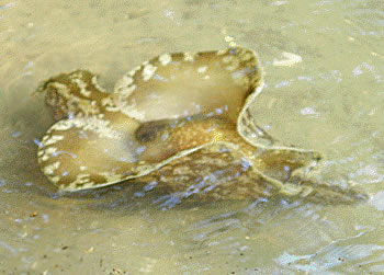 Being a diver who is more than very interested in identifying fish and sea creatures, I was blown away when this thing swam by the shore at my camp site while I was at Canaveral national Seashore in Florida. I have never seen one before, and was completely interested in discovering what it was. I guessed that it was a giant snail that somehow was seperated from its shell. Pretty good guess .... Using Paul Humman's Identifying Sea Creatures, I found that it was a Sea Hare. After reviewing your site, I believe he is a Aplysia brasiliana Rang, 1828. However, I'm not sure what the growth like thing on its back is. It was circular and seemed fixed. Can you help? Is it the undeveloped internal shell I've been reading about?