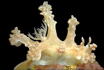"Ceratosoma alleni was just recently described by Gosliner in the Proceedings of the California Academy of Sciences, Vol 49, No. 3, pp. 115-126, April 9, 1996. Ceratosoma alleni is named for Jerry Allen of Tucson, Arizona, who first discovered this species near Dakak Resort, Dapitan, northern Mindanao in March 1993. Thus far this species is only known from the Mindanao and Luzon Islands in the Philippines. The external morphology of Ceratosoma alleni is unique among described species of Ceratosoma. It is the only species with prolonged lateral extensions of the notum which contain glandular arrays on the ventral surface. Ceratosoma alleni closely resembles an unidentified xeniid soft coral which has been found in the same habitat. This species may closely resemble the soft coral to elude visual predators" .... Terry Gosliner [extract from Mike Miller's Slug Site]
