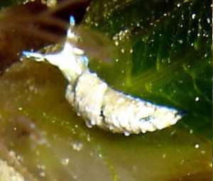 Locality: Eilat, Tables South, Israel. Red Sea (Gulf of Eilat). Depth: 28 m. Length: ca 1.5 cm. 04 March 2005. sea grass. Photographer: Binyamin and Shulamit Koretz