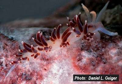 Banyuls sur Mer, Mediterranean coast, France. 1992. Two animals showing how change of food colour (in ceratal digestive gland) can change appearance. PHOTOS: Daniel L. Geiger.