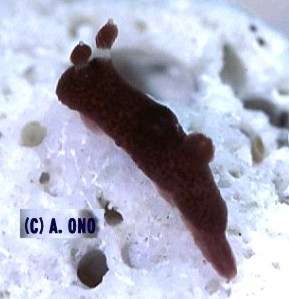 Living animal described by Gosliner & Johnson as light plum in colour. General shape ovoid with a smooth mantle. The rhinophores and gills are the same colour as the mantle.