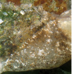 In the upper rock pools, Marsh Strand, 5 cm of water, near Haga-Haga, Eastern Cape, South Africa, 15 February 2002. Length: 16 mm. [lower photo is close up to show characteristic yellow spots]. Photos: Lindsay Warren.