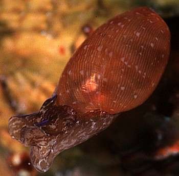 Kerama Is, near Okinawa, Japan. 4m depth, on a rope covered with algae and sponge. Shell length 6mm. PHOTO: Atsushi Ono.