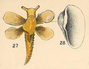 LOWER: An illustration by Vayssiere of Lobiger serradifalci (Calcara, 1840) from Pilsbry, 1896: Pl. 10.