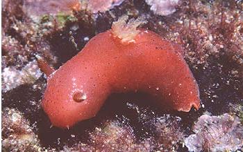 Portsea Pier, Victoria, Australia on 19 December 2000. The specimen was one of two found in close proximity on the bottom at a depth of 4.5m. It is 13mm in length. Photo: John Chuk.