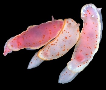 NSW specimens have been exhaustively studied (Avern, 1986) and the background colour is presumably genetically based because it is not the result of uptake of sponge pigment. The presence of direct development in this species and a pink colour form throughout its range, would suggest that a southern origin rather than a more recent tropical origin, is more likely for this species. It is possible that the pink Victorian or pink or yellow Tasmanian form is ancestral. Colour in those forms matches exactly their food sponge and can be considered most probably to be cryptic. Similar pink and yellow colour states can be found in the sympatric Verconia verconis. Although the same, or similar, pink and yellow aplysillid sponges are found in NSW, it is of interest that in this region there is also a white colour state, and both pink and white forms have a yellow border. This white state, with red spots and a yellow border is clearly no longer cryptic, and approximates well the predominant red-spotted colour group in this region.