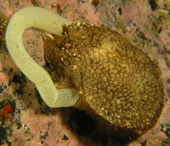 Animal with egg ribbon. Sasu Harbor, Jeju Island, Sth Korea. Depth: 5 m. Length: about 60mm. 27 June 2004. Sandy bottom with Rock. Photographer: Dong Jin Jwa