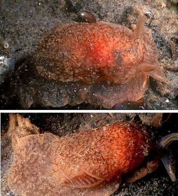 The Pleurobranchaea on this page may be P. obesa, but it may also be P. tarda Verrill, 1880, which is known from shallower waters from Cape Cod and to the south. It also is known from South African waters. It would be difficult to verify the identification without examining the reproductive anatomy. The penial morphology is quite distinctive between P. obesa and P. tarda.