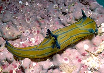 UPPER: Adult about to eat a specimen of Tambja abdere. LOWER: Juvenile. Both animals were collected in Bahia de Los Angeles, Baja California, 2000. PHOTOS: Angel Valdes.