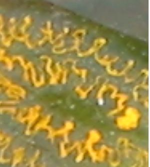 The egg ribbon is rather puzzling. I don't know if the yellow 'smear' is an example of extra-capsular yolk, or whether this is just an abnormal egg-laying. In the close-up [lower left] there are very few signs of eggs in the underlying mucus layer. I would suspect this is a failed egg-laying but looking at the photos of the egg ribbon of another Caribbean Elysia, Elysia pratensis, suggests that more than one Elysia from the Caribbean has this peculiar arrangement of yolk.