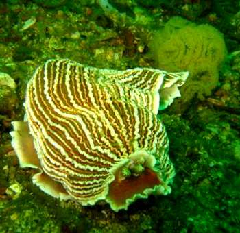 It was laying eggs at about 11am on a bright sunny day in 18m of water. The specimen was clean (devoid of sand on top) sitting on a bottom consisting of shell debris. (Less than a foot away was a second specimen which was partially covered in sand. I took a picture of it also but it is of poor quality.) The local topography consisted of a gently sloping shelly sand grading to shelly mud over about 50m with increasing depth. No seapens where present. Upslope about 15m away there is a rocky reef which rises to the surface and is marked by a navigation beacon (Dillon Rock). An egg mass is present behind the specimen.