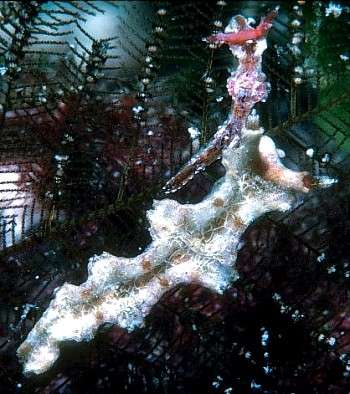 I have this one tentatively identified as Eumenis marmorata Alder & Hancock, 1846. The animals are extremely variable in coloration. I've found them on two occasions, and both times there were several individuals, no two of them alike in color. My specimens ranged from about 5 to 10 mm in length, and they are shown here on what is apparently their prey hydroid. They are rare here in the Marshalls, but I've found one group at both Kwajalein and Enewetak Atolls.
