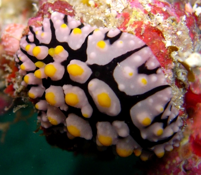 Also they were both sitting on the bottom on rocks covered in what we believe are pink sponges (or ascidians?). Can you help me identifying these slugs?