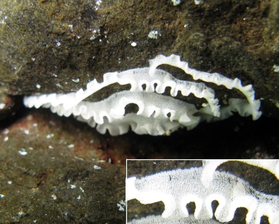 I couldn't find in your forum any picture of the spawn of Discodoris lilacina. I found Discodoris lilacina spawning at night. In the first picture, you can see the egg ribbon structure. I hope it's interesting for the forum.