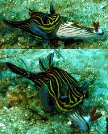Ogden C. M., 2008 (Apr 15) Nembrotha aurea being eaten by Robostra luteolineata [2]. [Message in] Sea Slug Forum. Australian Museum, Sydney. Available from http://www.seaslugforum.net/find/21527