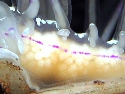 I came across this flabellinid in my photo archive and am wondering if those are eggs inside the individual's body.