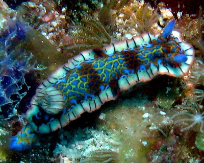 More photos of these puzzling caribbean chromodorids are always welcome. Although photos alone will not resolve the puzzles, I have found them extremely valuable in the past when you are trying to formulate the question to ask. For example can the animals I am calling H. acriba and H. bayeri on the Forum be just colour forms of one species. And is the animal in Lureen Ferretti's recent message [#22617] also a colour form? One problem is that some of the existing species were not well described, and another problem is that species of Hypselodoris and Chromodoris are well-known mimics, with groups of similarly coloured species evolving in the same geographic region. As I mentioned earlier, [message #7999], Eveline Marcus considered your animal to be a colour form of H. bayeri, while in Carribean Sea Slugs it is considered a possible form of H. acriba.