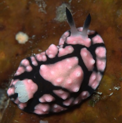 I was organizing some pictures a friend took while we were on a dive trip last July. One picture of what I first identified as either Phyllidiella annulata (pink rings) or Phyllidiella pustulosa looked a bit odd.