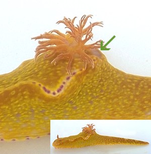 Risbecia tryoni - cone-shaped growth between rhinophores.