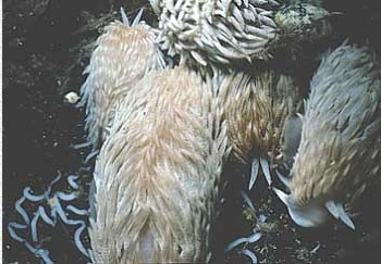 Lower: Flinders Pier, Victoria, Australia, October, 1996. 10 specimens under a piece of timber on the bottom beneath the pier at 4m depth. Size range of 3 - 5cm Photo: John Chuk