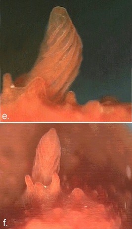 A, Specimen 18 mm long alive. Cantarriján, Almuñecar, Granada, Spain. Depth 5m. 14 June 2002. B, Specimen 5 mm long alive. Cantarriján, Almuñecar, Granada, Spain. Depth 5m. 3 March 1999. C, Specimen 20 mm long alive. Velilla, Almuñecar, Granada, Spain. Depth 9m. 14 October 1996. D, Underside of anterior end showing flattened triangular oral tentacles. E,F. Lateral and posterior view of rhinophore. G,H. Lateral and dorsal view of gills. Photos: Luis Sanchez Tocino.