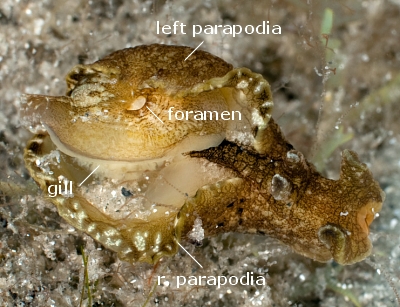I know there are a lot of images of Aplysia brasiliana on the Forum, but I am wondering whether this image is showing the gills? There are images of them swimming, but none seem to show the gills like this. So I wonder if this one is damaged?