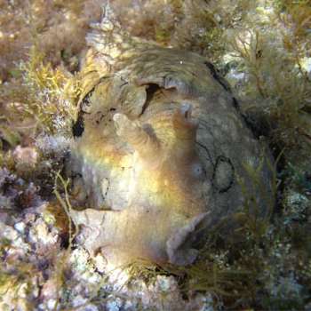 Thanks very much. There is no mistaking the identity of Aplysia dactylomela, with its large black rings. I wish all the Sea Hares were so easy to identify. If by chance you have photos of Sea Hares, other than A. dactylomela and the one we are calling A. brasiliana, they could be useful for comparative purposes.