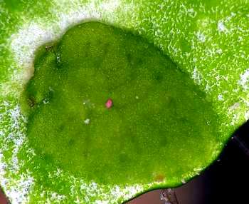 These animals look a bit more mature than the earlier ones,, and the colour pattern with whitish patches looks very much like the whitish patches on the alga. I suspect the white spot turns pink in older individuals.