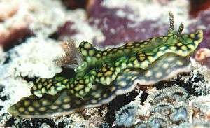 I have found several examples of the "normal" green form of Ceratosoma sinuata over the years.