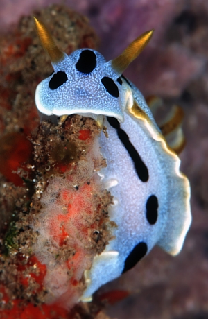 here's another photo of Chromodoris dianae feeding on an overgrown sponge.