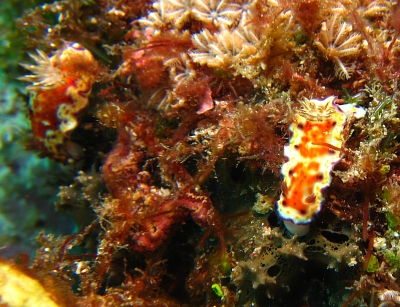 Thanks for another valuable set of photos. The more I see of chromodorids the more I feel that breeding aggregations usually begin as feeding aggregations. This may not be the case with herbivores such as the Sea Hares but if someone began a detailed survey of chromodorid aggregations I wouldn't mind betting that food would be the common factor.