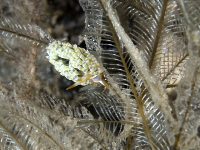 In fact this species looks quite like Cuthona yamasui from the Indo-West Pacific, which feeds on Aglaophenia [see Makoto Uesugi's message #10294].
