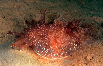 Anyway I encountered it in the summer of 2003 in only 4 metres of water in a very sandy area. It was fairly large compared to other local species at just over 5 centimetres. I know of only one other local underwater photographer that has been able to take a photograph of D. robustus locally and he encountered it twice in the same cove at a depth of about 20 metres. His specimens were red with the typical spots.