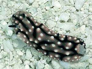 This is another fascinating mimic of the phyllidiids. The bushy gills are a real giveaway though. It is on the Forum as Discodoris? liturata, because at last count the generic position of the species was not definite. I try and keep up with the latest literature but if anyone knows of a recent publication involving this species, could they let me know please.