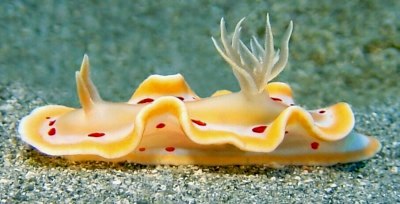 I am sending you a photo of Glossodoris cruenta which, as the name suggests, should have red spots. This particular one had black spots instead.