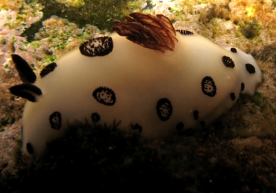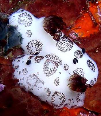 Here is a Jorunna funebris from Milne Bay, Papua New Guinea, March 1999. Found in about three meters of water very near a sulphur dioxide vent (the bubble bath), it was about two inches long and perched nicely for the photograph!